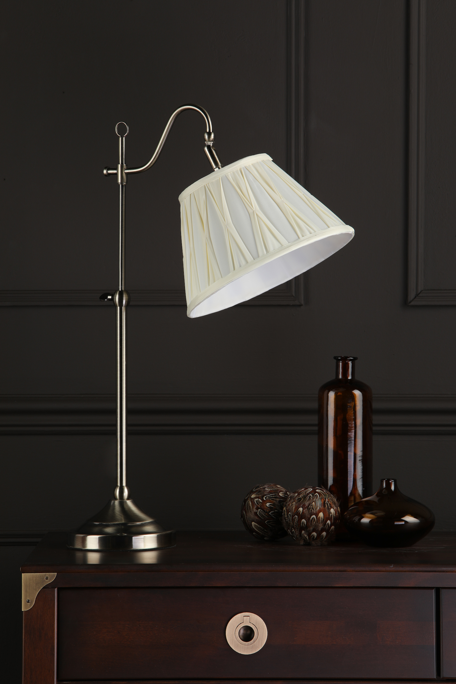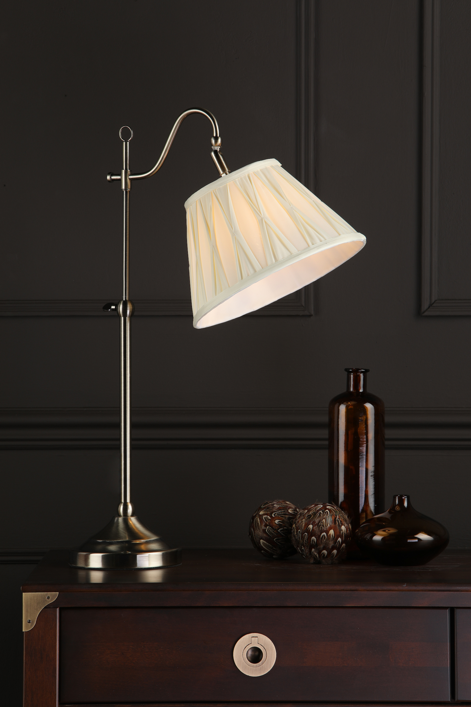 Suffolk Rise & Fall Table Lamp Antique Brass With Shade